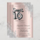 Um moderno, chic e glamouroso Sweet 16 com brilho prateado sobre fundo de ouro rosa.