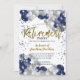 Um belo convite para aposentadoria. Um fabuloso marinho de balões azuis e prateados design com tipografia de ouro. Este convite para a festa de aposentadoria tem muito espaço para os detalhes da sua festa. Na moda de convite de cartão simples.