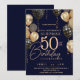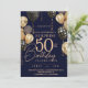 Convites Balão Dourado e Azul 50ª Foto Aniversário