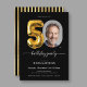 Balão Negro Dourado 50º Convite de aniversário. Comemore em estilo com este convite de aniversário moderno e elegante, com sotaques negros e dourados e uma ilustração de balão de folha de papel chico. Perfeito para marcar um grande momento de vida, a design combina sofisticação com um toque festivo. O traçado elegante melhora seu apelo contemporâneo, enquanto os detalhes luxuosos do ouro exudem elegância do eterno. Ideal para aniversários de marco, este convite dá o tom para uma celebração inesquecível, misturando a estética moderna com o glamour clássico.