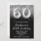 Crie o seu aniversário moderno de 60 anos com a arte digital falsa de balões de folhas. Envie uma mensagem ao criador se precisar de um convite para uma idade diferente criada. O fundo de vidro feminino apresenta gráficos decorativos faux brilhantes prateados sobre uma cor preta sólida. O brilho luxuoso, o brilho e os efeitos de texto em folha são criados por elementos artísticos que impressão gostam de uma foto. Você pode personalizar a caligrafia caprichosa e modernos todos os estilos de fonte e cores de bonés.