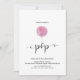 Um balão de cor-de-água cor-de-rosa-framboesa apresenta um convite de chá para uma menina "pronta para pop" para uma família moderna. Um design divertido com uma fonte bonito (que você pode mudar a cor) também é adequado para um anúncio geral de nascimento.