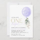 Convide amigos e família de estilo e dê o tom para o seu dia especial com este charmoso convite de aniversário. Design apresenta um balão roxo com folhas de eucalipto sobre fundo branco.