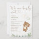 Verde Castanho Podemos Antecipar Convite para Chá de fraldas de Espera Doce podemos esperar que o bebê chegue ao convite para o chá de fraldas com um urso castanho, vários balões, cabeçalho de fonte cardíaca e verde e verde-ouro. O convite para chás de fraldas deste urso é ideal para um chá de fraldas neutro em termos de gênero.
