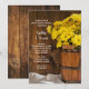 Convide os convidados para celebrar a recém-casada e o noivo na manhã após a cerimônia de casamento com o charmoso Convite de Café da Manhã Pós-Casamento Country Wooden Bucket e Yellow Daisies. Este convite casual, porém sofisticado, para o Desjejum ou Almoço Pós-Casamento em estilo rústico chic personalizado apresenta uma fotografia floral digitalmente aprimorada de um balde de madeira cheio de flores de margaridas amarelas e um fundo de madeira de celeiro marrom desgastado.