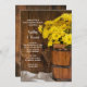 Convide convidados para comemorar a noiva e noiva recém-casada na manhã seguinte à cerimônia de casamento com o encantador Balde de Wooden e o Posto de Estrelas Amarelas para o Campo de Casamento Brunch. Este casual, porém clássico, estilo de fazenda rústica depois do Café da Manhã de Casamento ou do Luncheon Invite apresenta uma fotografia floral de cor digital requintada de um balde de madeira repleto de flores margaridas amarelas e de um fundo de madeira marrom e curada.