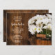 Convide convidados para uma festa casual, mas elegante, do estilo fazenda pré-casamento, honrando a noiva para estar com o charmoso Balde de Madeira e Chá de panela do País das Díssias Brancas. Este chá de casamento, informal e elegante, personalizado, com o tema de uma fazenda apresenta uma fotografia floral, quase aperfeiçoada, de um balde de madeira repleto de flores margaridas brancas e de um fundo de madeira marrom e curada rústica.