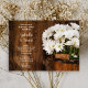 Convidar convidados para uma festa pré-casamento de celeiro honrando a noiva e o noivo com o charmoso Balde de Madeira do Janto de Casamento de Dísias Brancas. Esta festa de janto casual, porém clássica, do estilo rústico da fazenda chic, apresenta uma fotografia floral quintal e melhorada digitalmente de um balde de madeira repleto de flores margaridas brancas e de um fundo de madeira marrom-curada.