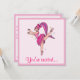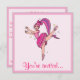 Uma bailarina com um arco decora este convite personalizável para uma competição de dança. Para ver itens correspondentes, digite "pinguincornerstore balé" no bar de pesquisa do Zazzle.