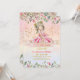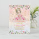 Uma bela bailarina está olhando para você cercada por flores delicadas. O fundo tem ouro brilho no topo — um cartão de convite para comemorar o doce aniversário de sua garota.