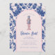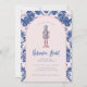 Este convite para o balé Nutcracker tem um design pré-disquete do milênio apresentando um pregador com um figurino rosa e azul e um marinho azul e rosa-rosa-rosa-borda ao redor da borda. A frente e o verso têm uma cor damasco coordenadora.