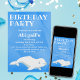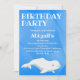 Esta bela design apresenta uma baleia beluga sobre um fundo azul vívido. Personalize facilmente com os detalhes do seu partido!