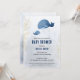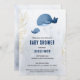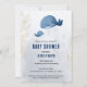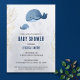 Chá de fraldas náutico elegante e fofo, com uma ilustração de uma mãe e de uma baleia bebê sobre um fundo de gradiente azul. Alguns ramos de ouro estão nas laterais do convite (não uma folha real, simplesmente simulada).