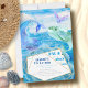 Convite de aniversário de baleias-oceânicas que você pode personalizar para qualquer idade. Este design de aquarela tem baleias no oceano e um pássaro no céu de verão. Os detalhes do convite estão em uma joia de ouro geométrica debaixo do mar. Paleta de cores neutra do gênero em tons azuis, verdes e roxos - ideal para uma festa de aniversário de verão para crianças ou adolescentes. Perfeito para o tema baleia, tema oceânico náutico, sob o mar, festa de praia, tema de esporte aquático como mergulho, surfe, natação ou festa de piscina.