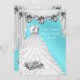 Bonito vestido de festa de vestimenta branca e tiara com rosas, convites de Quinceanera azul teal. Personalize a parte frontal e traseira do seu evento. Você pode escolher seu próprio estilo de fonte, cor e tamanho de fonte e seu próprio texto.