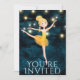Este design balé de impressionante apresenta a mais bonita bailarina loira com um tutu amarelo dançando em "Você é Convidado" na frente de um fundo azul profundo com luzes lindas de cordas. Personalize facilmente as informações de sua festa!
