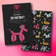 A cute multicolored kids balloon animals party design. A fun design featuring hand drawn illustrations of balloon animals wearing party hats. A cute children's balloon animals party theme design perfect for birthday's, bedroom decor and personalized gifts.
