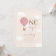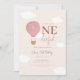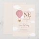 Celebre o primeiro aniversário do seu bebê com este convite elegante e neutro em termos de gênero, apresentando um balão de ar quente bege suave, detalhes rosa suave e texto moderno minimalista. Uma escolha perfeita para uma celebração “Onederful” simples, elegante e doce.