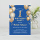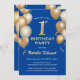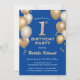 primeiro aniversario Azul e Dourado Balões de Brilho Convite de Aniversário. Para mais personalização, clique no botão "Personalizar" e use nossa ferramenta de design para modificar este modelo.