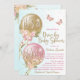 Chá de fraldas Covid de Menina com balões bonito cor-de-rosa e dourados com flores, borboletas e arcos sobre fundo azul e branco. Este drive cor-de-rosa, ouro e azul lacrimejante por convite de chá de fraldas é facilmente personalizado com os detalhes de seu evento.