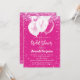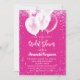 Um fundo rosa quente. Decorado com confete rosa e balões brancos. Texto branco. Personalize e adicione um nome e detalhes da parte.