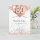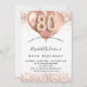 Para um 80 elegante aniversário. Um fundo branco. Decorado com rosa dourado confete e balões. Personalize e adicione um nome e detalhes da festa. O nome é escrito com um script de estilo manuscrito, número 80 com fontes de estilo de balão.