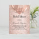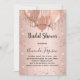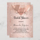 Para um chá de panela elegante. Um fundo de aparência metálica falsa rosa dourado. Decorado com rosa dourado, brilho rosado, aspecto de pingar tinta e balões. Personalize e adicione o nome da noiva a ser e os detalhes da festa. O nome e o texto: Chá de panela são escritos com um script de estilo manuscrito
