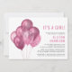 Celebrar a futura mãe a uma distância segura com uma condução a chá de fraldas. Este simples convite para o chá de uma menina bonita apresenta um arranjo de balões cor-de-rosa brilhantes com brilho e outros embelezamentos brilhantes e "É uma Rapariga!" e o nome da mãe na moderna coordenação mínima da tipografia rosa. Você pode personalizar facilmente com a unidade através dos detalhes do chá.