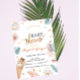 Um convite de chá de fraldas bonito apresenta uma aquarela arco-íris, balões, sorvete e folhas de palheiro. Esses convites para chuveiros de bebês são facilmente personalizados para seu evento simplesmente adicionando seus detalhes.