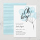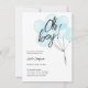 Celebrar as mamães a serem com este belo e moderno convite de chás de fraldas com balões de aquarela em azul pastel com "Oh Boy!" em caligrafia simples de escrita.