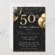 Convites Balões de brilho preto e Dourado 50º aniversário