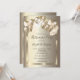 Quadro floral de ouro elegante e balões de ouro sobre fundo de champanhe.