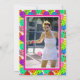 Nada supera um dia na quadra de pickleball, a menos que seja uma festa de aniversário na quadra de pickleball! Celebre seu dia especial conosco. Bolas de pickleball são transformadas em balões coloridos de festa com serpentinas e confetes para uma festa de pickleball. Nosso convite personalizado permite que você substitua a foto com a estrela do aniversário, tornando-o um souvenir personalizado. Desde configurações de mesa até produtos de papel e embrulho de presente, nosso vibrante design de Balões e Confetes de Pickleball cria uma atmosfera animada que certamente tornará sua celebração inesquecível. Então, pegue seus remos e prepare-se para uma festa de aniversário temática de pickleball que fará todos sorrir e balançar em estilo! 0-0-2 Feliz Aniversário para Você - que os jogos de festa de pickleball comecem! Pickleball magenta no centro de uma raquete de pickle