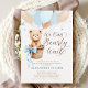 Isto Podemos Ceder Balões de Espera Arco Blue Tan Baby Boy Invitation apresenta um charmoso design de aquarela com um bebê ursinho giro numa cesta carregada por um monte de balões em azul-claro e bege. Um grande arco azul amarrado bem ao redor da cesta adiciona um doce toque de acabamento, fazer esse design, tanto branco quanto na moda. A trabalho de arte de aquarela pintada à mão cria um aspecto moderno, mas rústico, perfeito para um chá de fraldas de menino. Ideal para podermos fazer chá de fraldas de Espera, chás de fraldas de balão, celebrações inspiradas em balão de ar quente, ou chás de bebês com aquarela rústica, este convite combina um adorável trabalho de arte de urso com uma paleta de cores azul e neutra. O bando de balões e os detalhes do arco fazem com que seja especialmente adequado para a décura de chá martirizada, rústica ou com temas de balões. Personalize facilmente com os detalhes do seu chá para criar um convite de manutenção que os convidados irão tesourar. Este Bearly Wait Balloon Basket com Arco Invitation dá o tom perfeito para uma celebração doce e memorável.