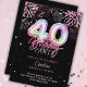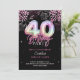 Celebre um aniversário marcante com estilo com nosso convite personalizado de 40º aniversário com números de balão de folha iridescente rosa! Este design elegante apresenta um fundo preto adornado com uma sobreposição deslumbrante de fogos de artifício e estrelas cintilantes em rosa, tornando-o a escolha perfeita para uma celebração festiva e sofisticada. Os números de balão de folha adicionam um toque de luxo, enquanto a fonte cursiva adiciona um toque personalizado e único. Este convite é perfeito para uma festa de 40º aniversário com tema rosa. Torne o dia dela ainda mais memorável com este convite colorido e sofisticado!