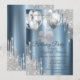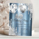 Convites Balões de Glitter Prateado com Gotas Azul Metálico