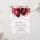 Para um elegante aniversário de 18 anos (ou qualquer idade). Um fundo branco na moda. Decorado com brilho vermelho e balões. Personalize e adicione um nome, idade e detalhes da festa. O nome é escrito com um script de estilo manuscrito