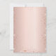 Para uma elegante Quinceañera, 15. Um fundo de aparência metálica falsa rosa dourado. Decorado com rosa dourado, brilho rosado, aspecto de pingar tinta e balões. Personalize e adicione um nome e detalhes da parte. O nome é escrito com um script de estilo manuscrito