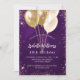 Para uma elegante 18ª festa de aniversário. Um fundo roxo profundo da moda. A cor roxa é irregular. Decorado com brilho sujo de ouro, faíscas e balões. Personalize e adicione um nome, idade e detalhes da festa. O nome é escrito com um script de estilo manuscrito