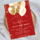 Para uma elegante festa de aniversário 18 (ou qualquer idade). Um fundo vermelho da moda. Decorado com brilho dourado, faíscas e balões. Personalize e adicione um nome, idade e detalhes da festa. O nome é escrito com um script de estilo manuscrito