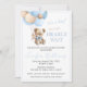 Explore nossos encantadores chás de bebês com um adorável urso aquoso segurando o tema dos balões azuis. Mergulhe na beleza desses convites, perfeito para celebrar a chegada do seu pequeno.