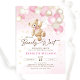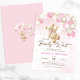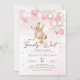 Podemos esperar o convite para chá de fraldas. Design de tendências em cores cor rosa, marrom, bege e cinza neutra. Apresenta ursinho de pelúcia agudo, letra de guião de balões e estrelas. Perfeito para uma elegante celebração de chá estilo boho. Personalize com seus próprios detalhes. Impressos convites Zazzle ou modelo de impressão digital instantânea para download.
