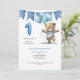 Urso Bebê Adorável com convite de festas de primeiro aniversario de Balões. Este convite está disponível em azul e rosa