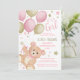 Convites Balões de Urso Rosa, Chá de fraldas Dourado De Gar