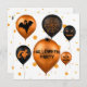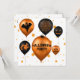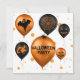 Feliz ilustração do Dia das Bruxas apresentando balões de festa em preto e laranja com um fantasma, uma bruxa, uma teia de aranha e aranha e jack-o-lanterna em um fundo branco.