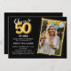 Balões Dourados Pretos de Chalkboard 50º Convite Fotográfico de Aniversário