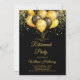 Um convite de festas festivo moderno com balões dourados e negros com brilho dourado e uma tipografia de escrita de caligrafia.