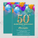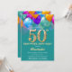 Convite de Baloões e Confetes Coloridos Teal e Dourados para Surpresa de Aniversário de 50 anos. Para personalização adicional, clique no botão "Personalize" e use nossa ferramenta de design para modificar este modelo.