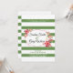 Padrão elegante de listras brancas e verdes e buquê colorido em uma estrutura brilhante rosa. Modelo de convite de casamento personalizável