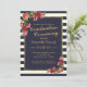 Rosas elegantes, quicas e vermelhas e rosa-do-campo com riscas brancas e azuis-marfim-marinho e dourado-falsa impresso esboçado, convites para cerimônias de graduação. Este design clássico e sofisticado é perfeito para o formando clássico, na moda e moderno. Personalize com sua própria mensagem na frente e um monograma personalizado inicial no verso. Todas as impressão de fotos.